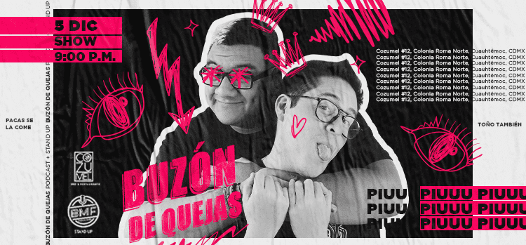 Buzón de quejas con Toño y Pacas llega a Terraza Cozumel! El único lugar donde tus quejas siempre serán escuchadas llega al mejor Club de Comedia de la CDMX donde podrás comer, reír y beber... Y ADEMAS QUEJARTE! UN PODCAST COMPLETAMENTE EN VIVO. Abrimos puerta 7:30 PM Show inico 9:00 PM