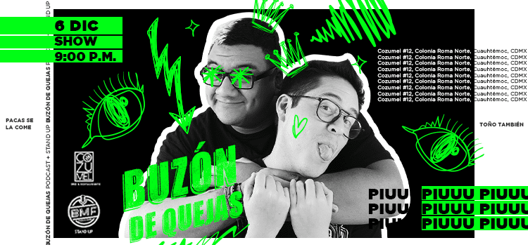 Buzón de quejas con Toño y Pacas llega a Terraza Cozumel! El único lugar donde tus quejas siempre serán escuchadas llega al mejor Club de Comedia de la CDMX donde podrás comer, reír y beber... Y ADEMAS QUEJARTE! UN PODCAST COMPLETAMENTE EN VIVO. Abrimos puerta 7:30 PM Show inico 9:00 PM